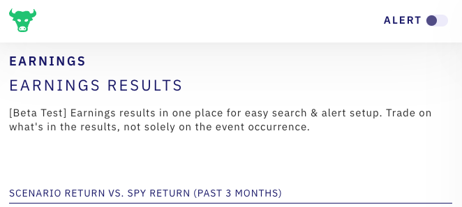 The earnings scenario is not predictive. It is in Beta Test and right now just there to provide information since no other site offers a comprehensive, historical, filterable list of earnings results paired with the ability to set alerts for them.