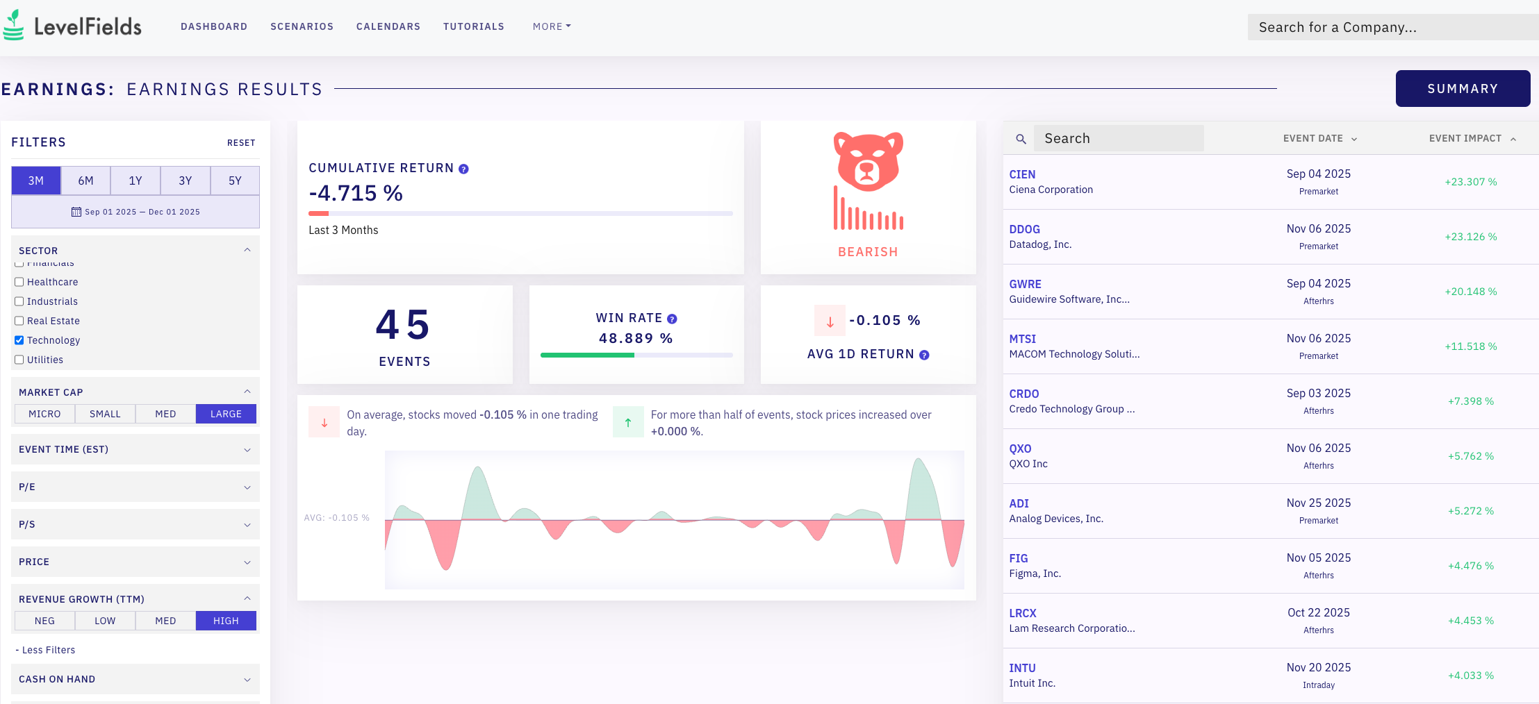 - Scanning for big price moves can indicate a major change in the earnings results - providing investment ideas.
