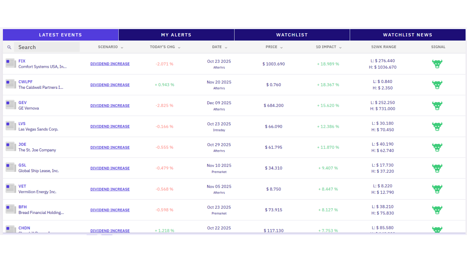 Most investors learn about dividend changes after they’ve circulated through headlines and data feeds. LevelFields is built to help you act at the time of announcement and reduce manual tracking.