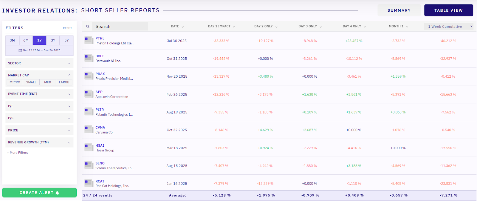 LevelFields data consistently shows that the majority of downside risk in short seller reports is front-loaded.